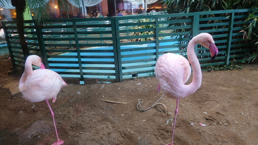 お店に入って驚いたのはフラミンゴが飼育されていたこと。